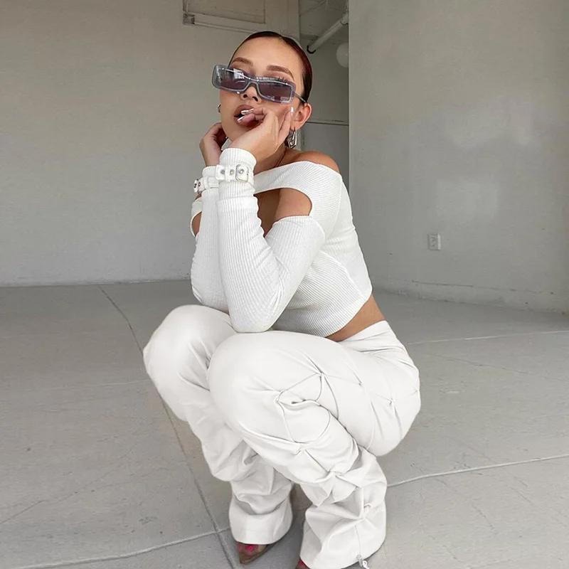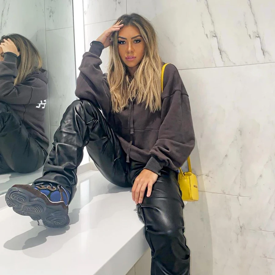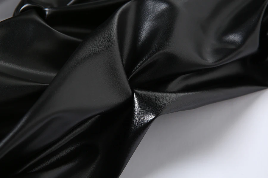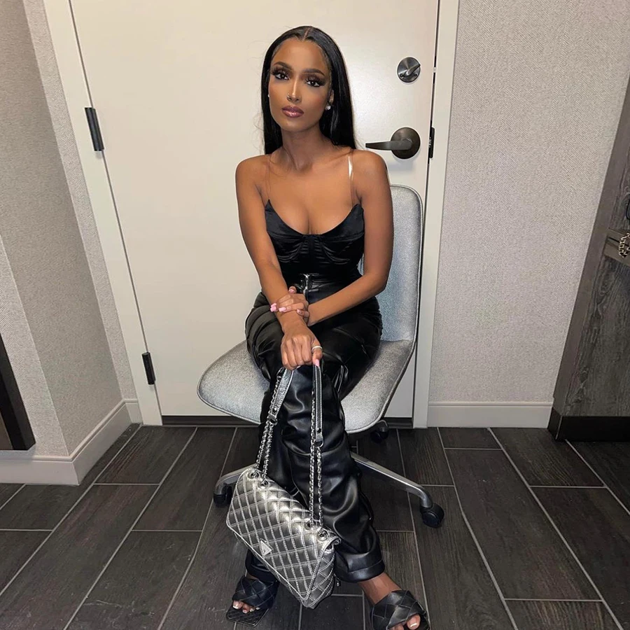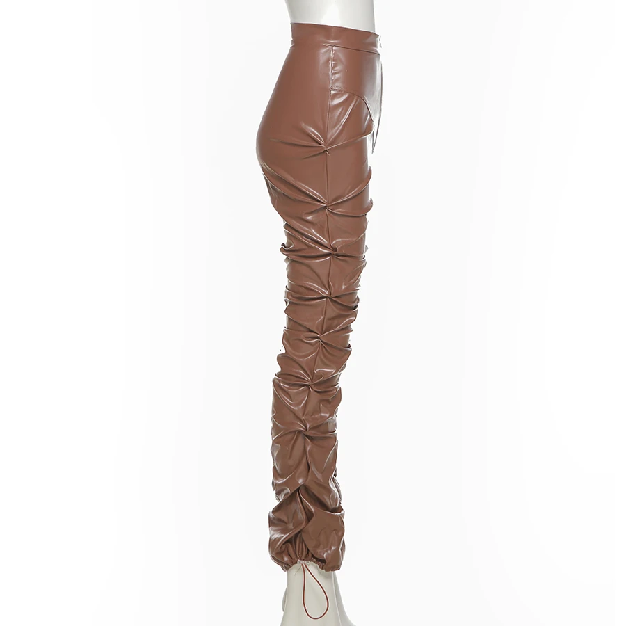 Sisterlinda Faux Leather Stacked Y2K Pant Feminino Cintura Alta com Zíper Fenda Lateral Hipster Streetwear Feminino Moda Fina Calças Longas